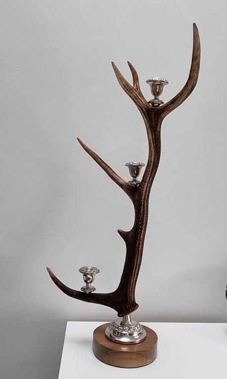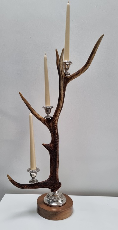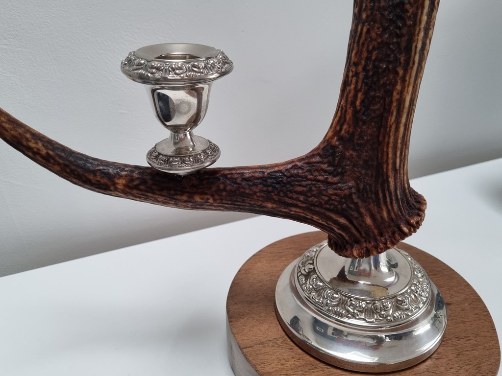 This antler is made into a showpiece with the addition of the "Ianthe" antique silver plated scones and plinth.