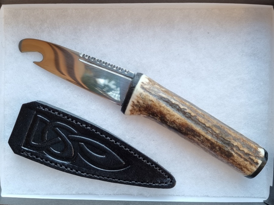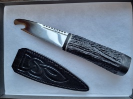 An alternative and unique safety Sgian Dubh (skee-en-doo). Can be worn in the kilt hose like a Sgian Dubh and ideal for those situations when a bottle opener comes in handy.