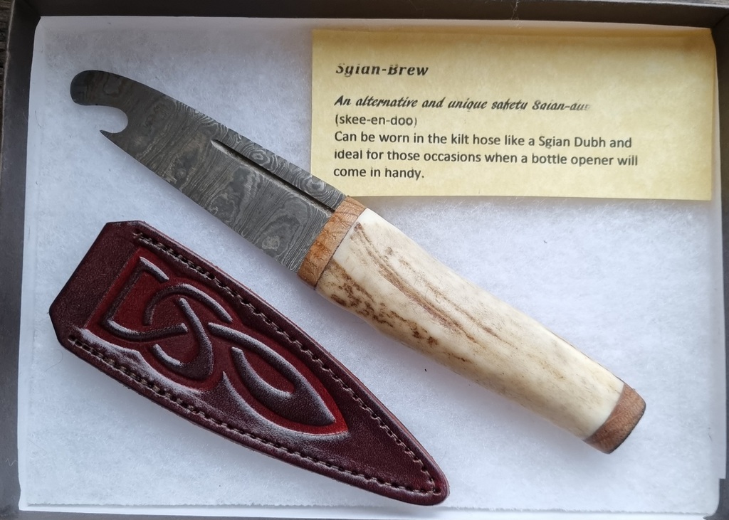 It is now worn as part of traditional Scottish dress tucked into the top of the kilt hose with only the upper portion of the hilt showing.This sgian brew can be worn just the same and also comes in handy when a bottle needs opened.