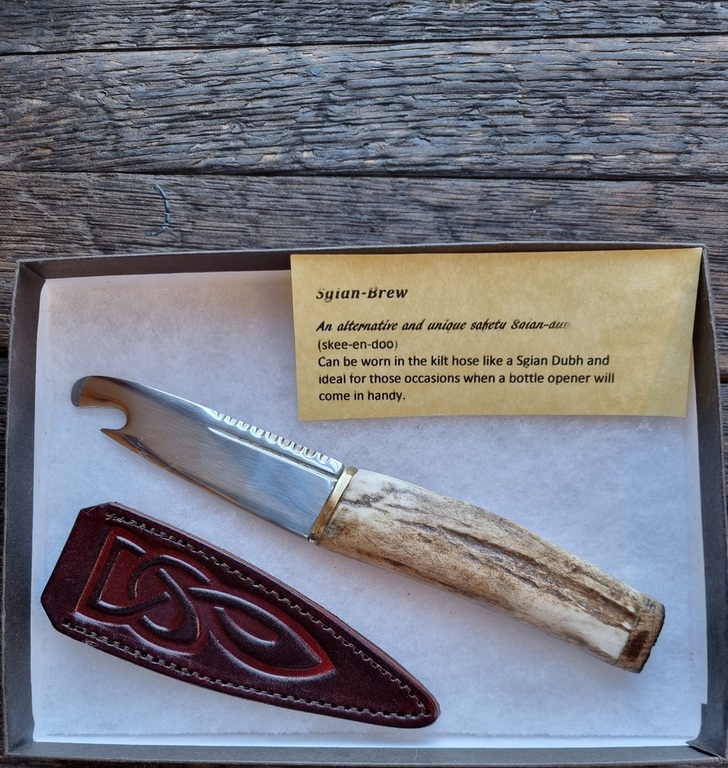 It is now worn as part of traditional Scottish dress tucked into the top of the kilt hose with only the upper portion of the hilt showing.This sgian brew can be worn just the same and also comes in handy when a bottle needs opened.