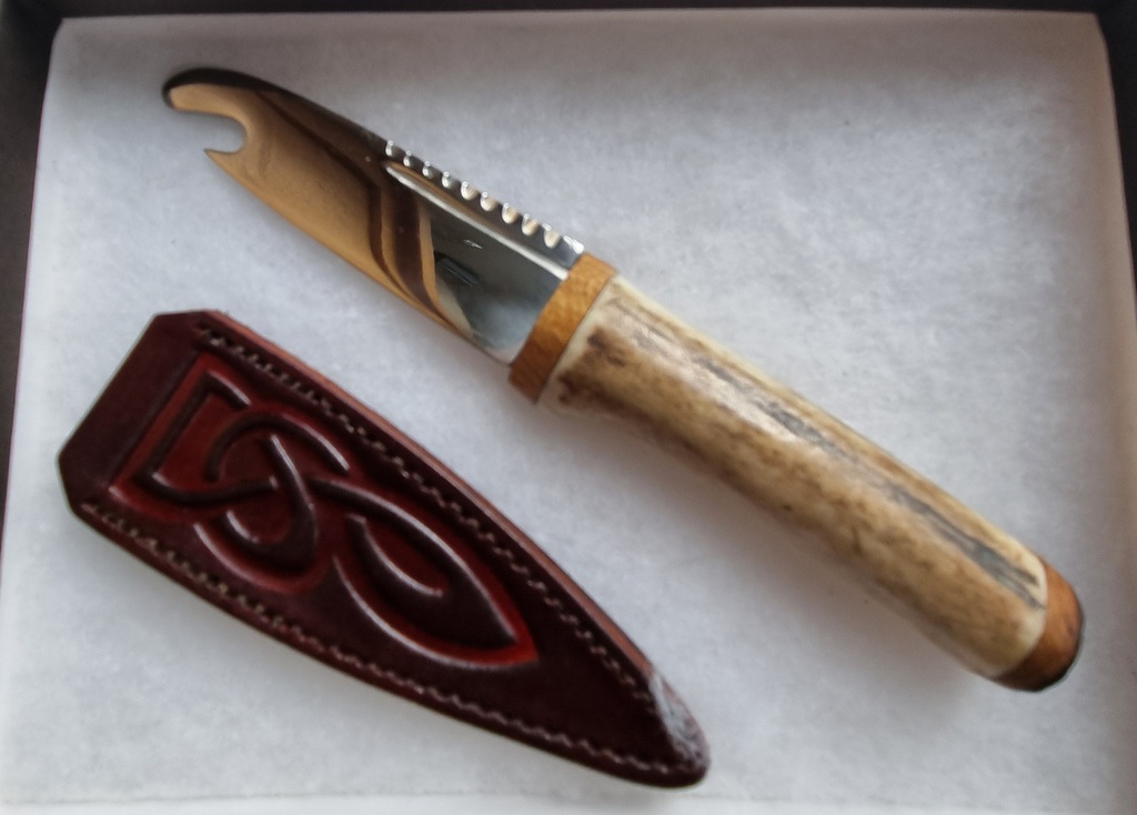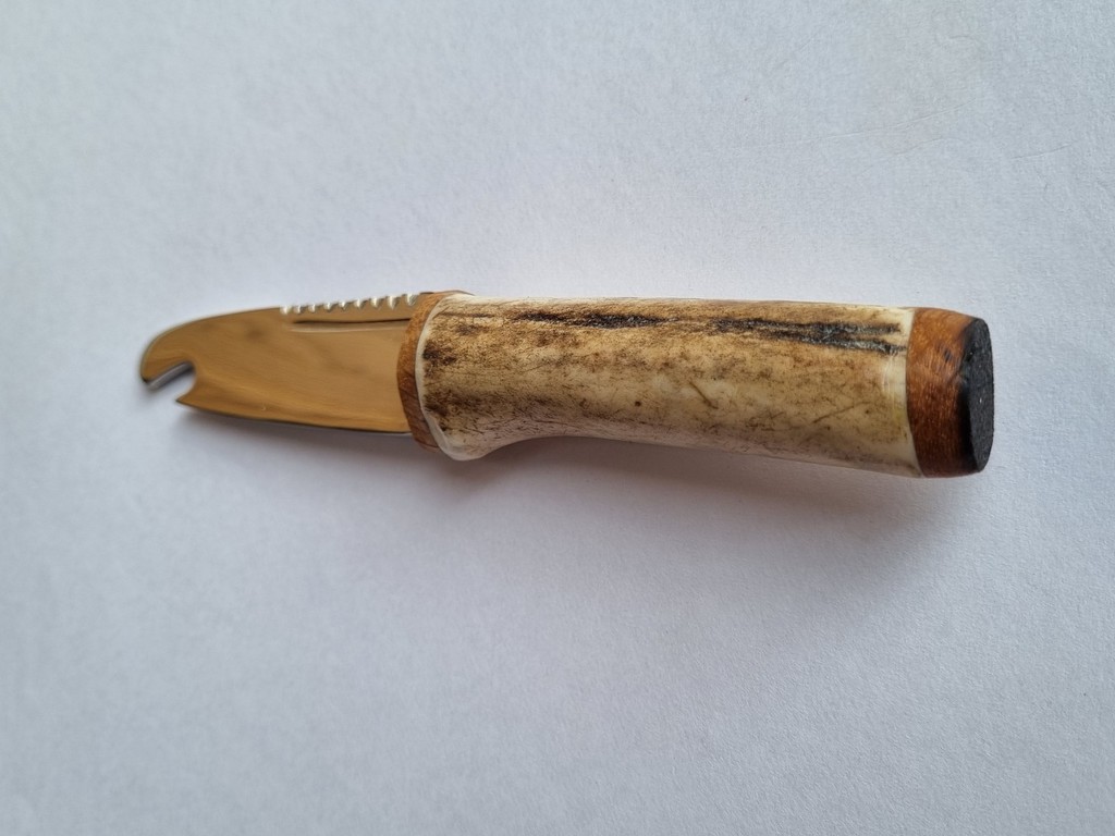 A beautifully coloured Scottish Stag antler and high carbon steel bottle opener.