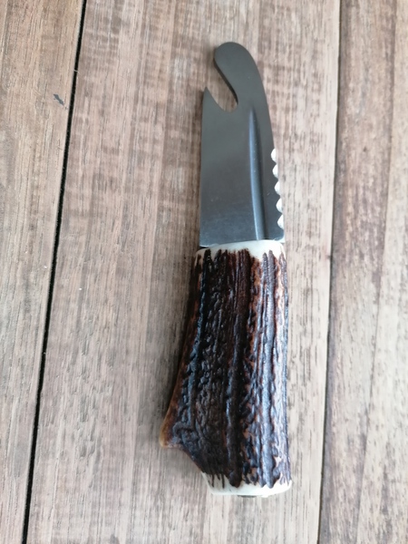 Comes with a heavy and substantial steel blade which may be more suited to the man cave than a sock. It is capped with a brass spent bullet.