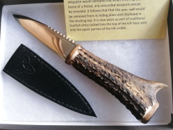 It is now worn as part of traditional Scottish dress tucked into the top of the kilt hose with only the upper portion of hilt visible.