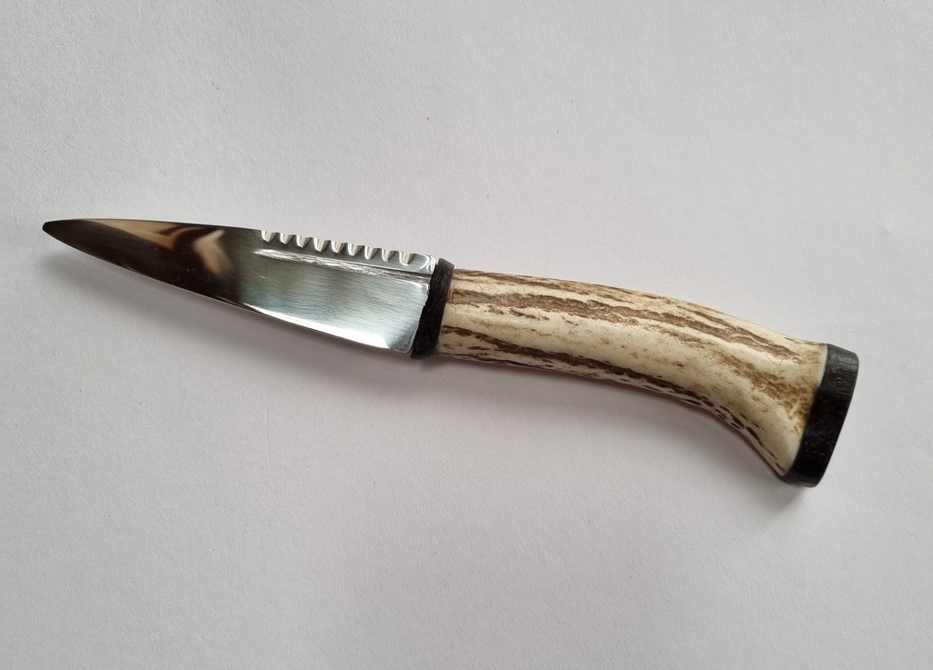 Antler Sgian Dubh with bog oak hilt and cap.