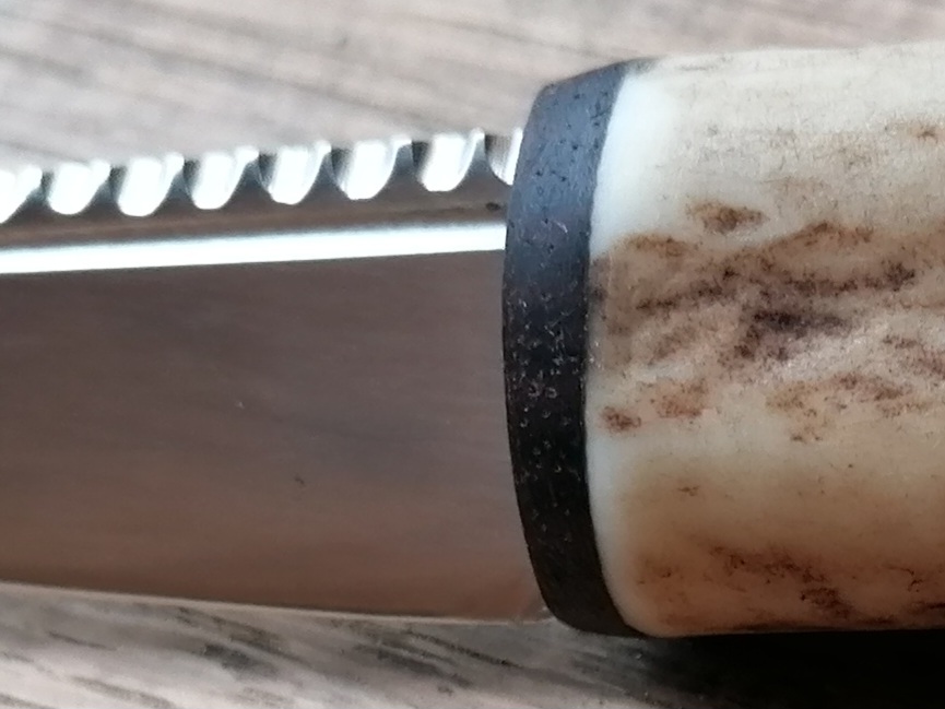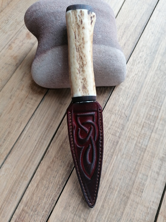 A beautifully coloured Scottish Stag antler which is complimented by the Rosewood hilt and cap with carbon steel blade.